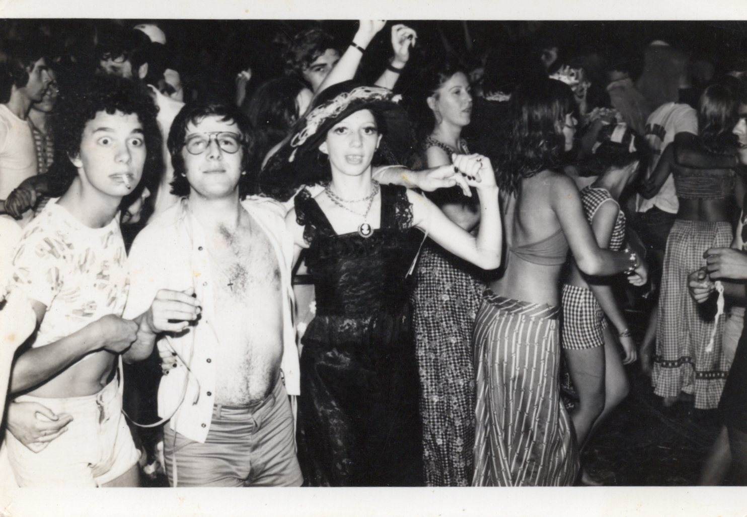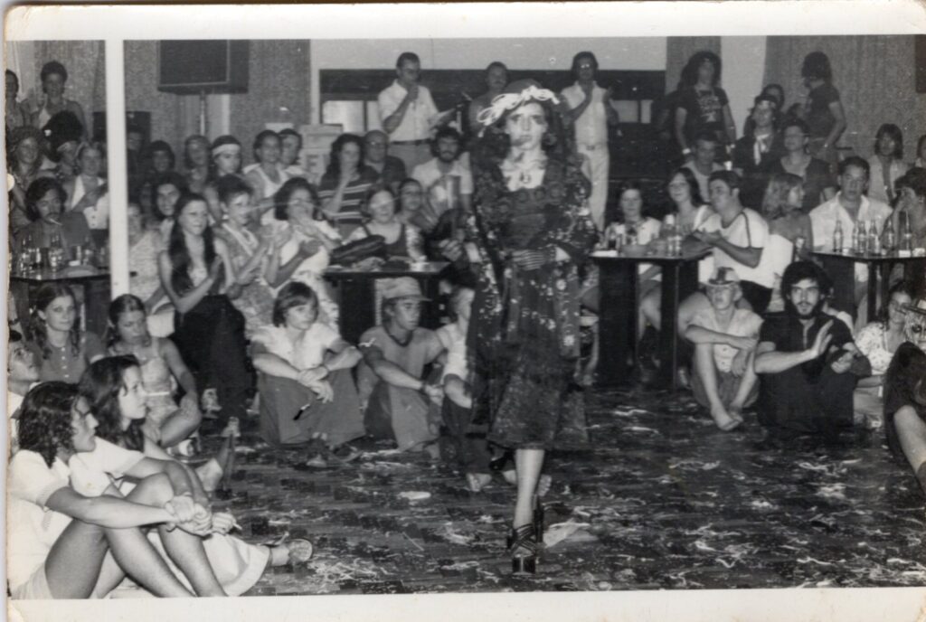 Histórico: Fotografia de Onofre retratando concurso de fantasia do Guarapuava Esporte Clube em 1976, em que Marilda Campos fantasiada "Viúva Alegre" venceu a competição.